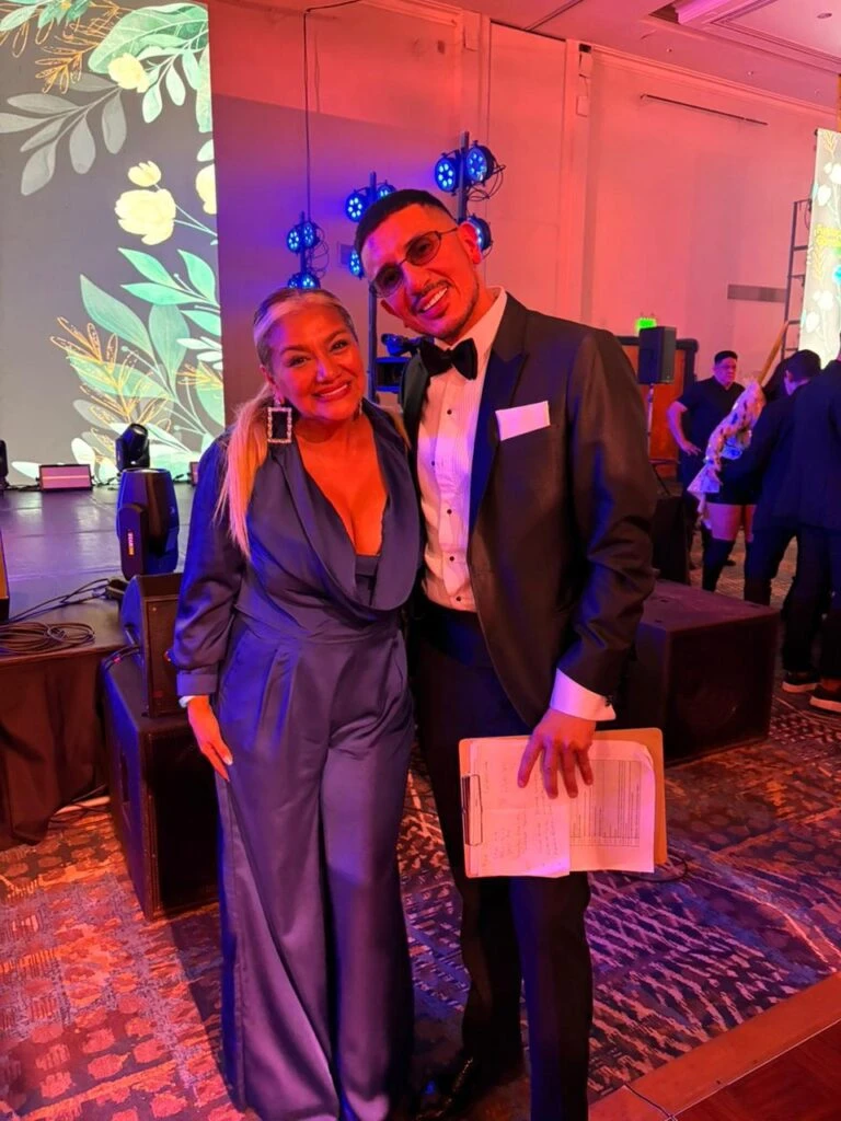 Feliz y contenta con la señal del cielo que le envió su ex pareja, La Bomba Tucumana recibió el premio de manos de Walter Meninato, encargado de la convocatoria de influencers, famosos y figuras públicas de la gala a beneficio del Hospital Garrahan.