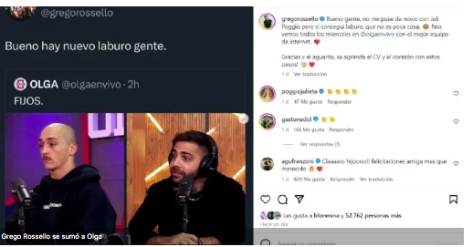 En la continuidad de su mensaje, Grego terminó por corroborar el día que saldrá al aire: “Nos vemos todos los miércoles en Olga”. E inmediatamente llegó el comentario que algunos interpretaron como una mojada de oreja para Nico Occhiato: “Estaré con el mejor equipo de internet”.