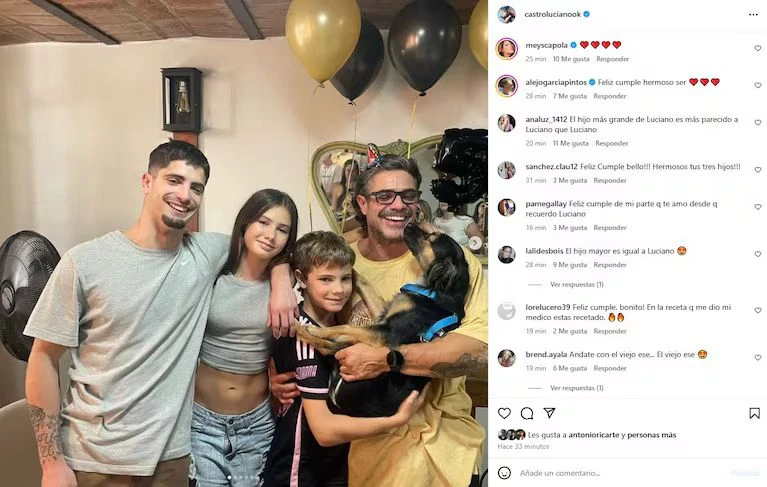 Y fue este último, el mayor de los herederos de Castro el cual llamó la atención de sus miles de seguidores por el gran parecido que tiene con su padre. Reaccionando a la publicación los internautas le dejaron mensajes tales como, “El hijo más grande de Luciano es más parecido a Luciano que Luciano”.