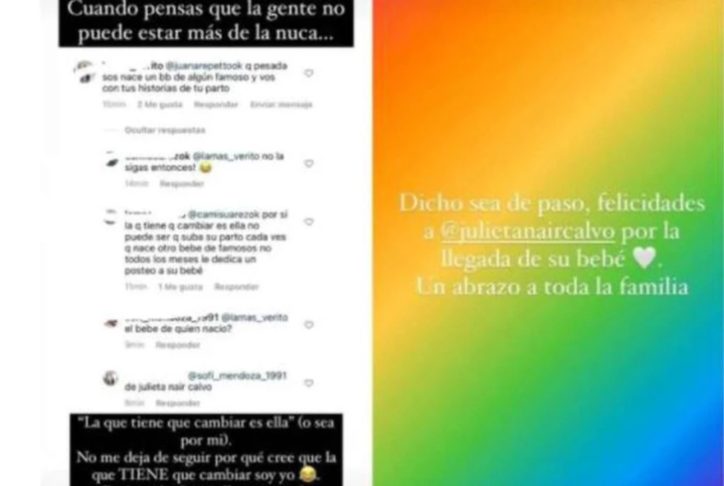 “Qué pesada que sos. Nace el bebé de algún famoso y vos con historias sobre tu parto”, le dijeron, sin filtro. Y cuando alguien le comentó que si le molestaba el contenido de Juana, podía dejar de seguirla, la mujer insistió.