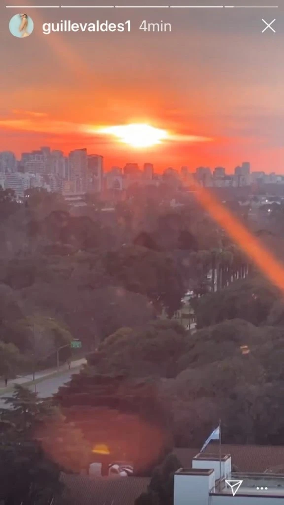 En este domingo soleado, la mamá de Lolo subió una storie del atardecer, una captura de un momento bello en que el astro se va escondiendo en el horizonte. Claramente tomada desde las alturas de su departamento en la torre Le Parc de Palermo.