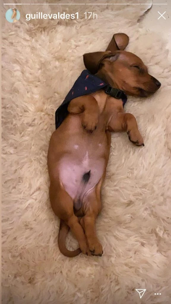 La modelo mostró en sus historias de Instagram a su perrita preferida en una dulce imagen en donde se ve a su mascota durmiendo plácidamente vistiendo un tierno chalequito.