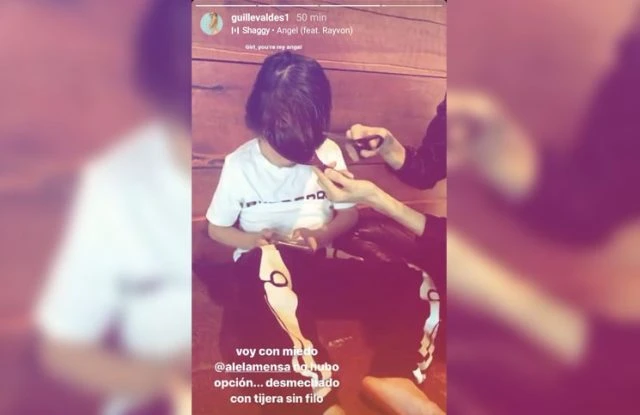 "Voy con miedo. No hubo opción.. desmechado con tijera sin filo", escribió en el posteo que la muestra lookeando a su pequeño mientras él juega con el celular.