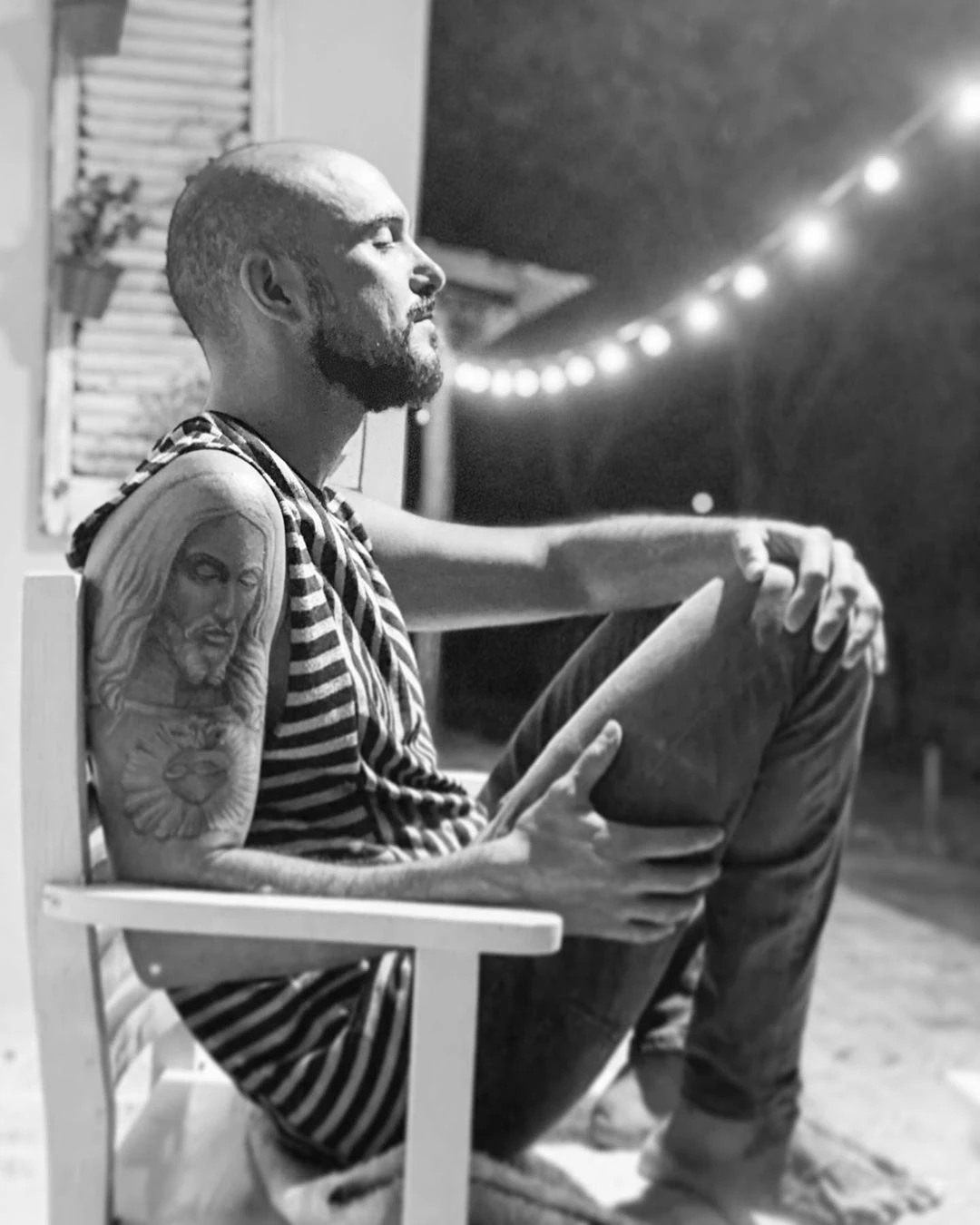 En la foto, en blanco y negro, se lo ve sentado en un banco y escribió: “Dos días de descanso para después seguir en el camino. Que nos abrace la calma. Los quiero”, pero sin duda el detalle que más sorprendió a todos fue su enorme tatuaje en el brazo.