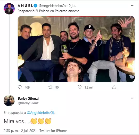 Al parecer, Barby Silenzi no tomó muy bien la situación y decidió responder de manera irónica la foto de Ángel: "Mirá vos", escribió la bailarina junto con 3 emojis de aplausos.