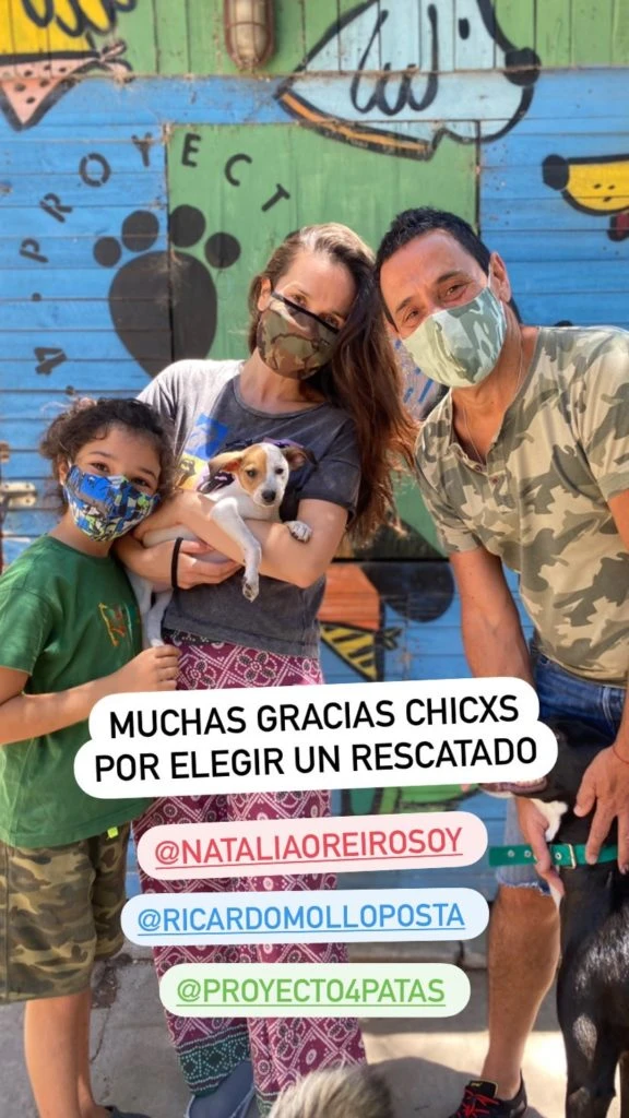 Por su parte, desde la ONG agradecieron a Oreiro por su buena acción: "Muchas gracias por elegir un rescatado", escribieron junto a la postal de Oreiro, Ricardo Mollo y su hijo Ata.