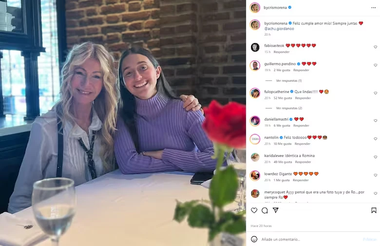 “Feliz cumple amor mío. Siempre juntas”, escribió Morena en su cuenta de Instagram. La publicación rápidamente se hizo viral entre sus fans, quienes no tardaron en marcar el increíble parecido físico con Romina.