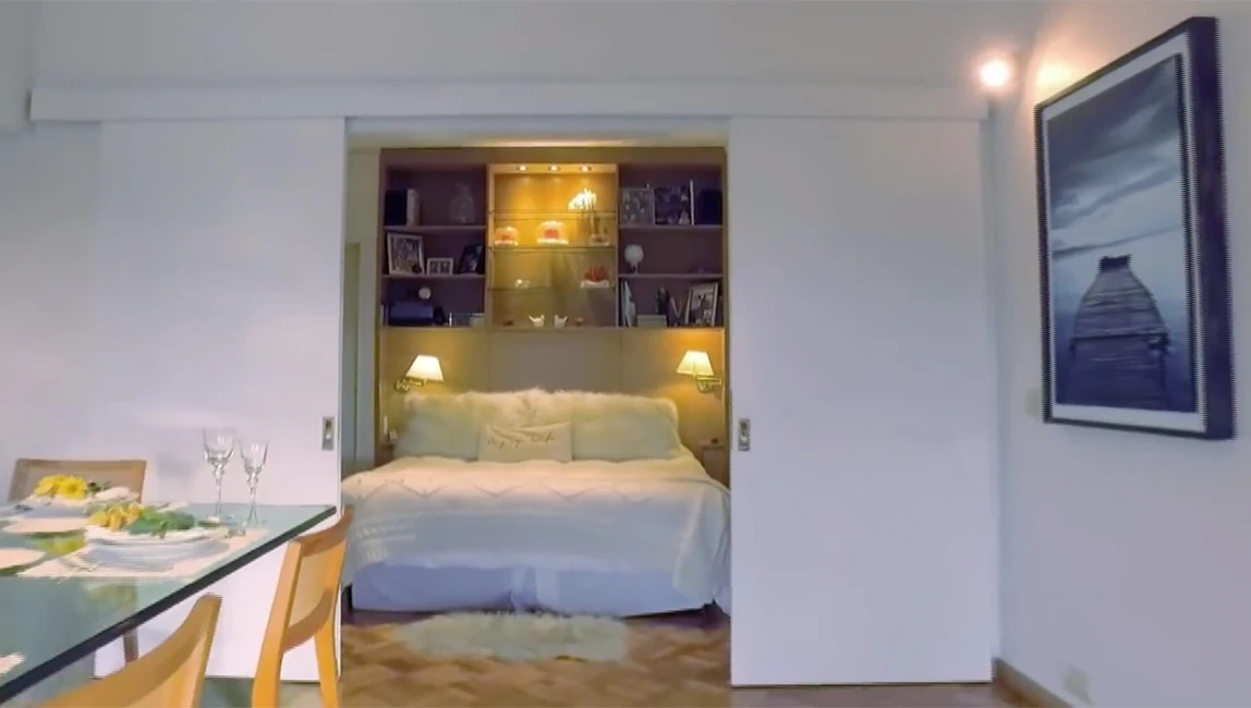 La cocina, grande y práctica, ofrece todo el lugar necesario para crear diferentes platos. Pero lo más original llegó cuando Iliana quiso mostrar su cuarto. Abrió dos puertas y dejó al descubierto su cama de dos plazas.