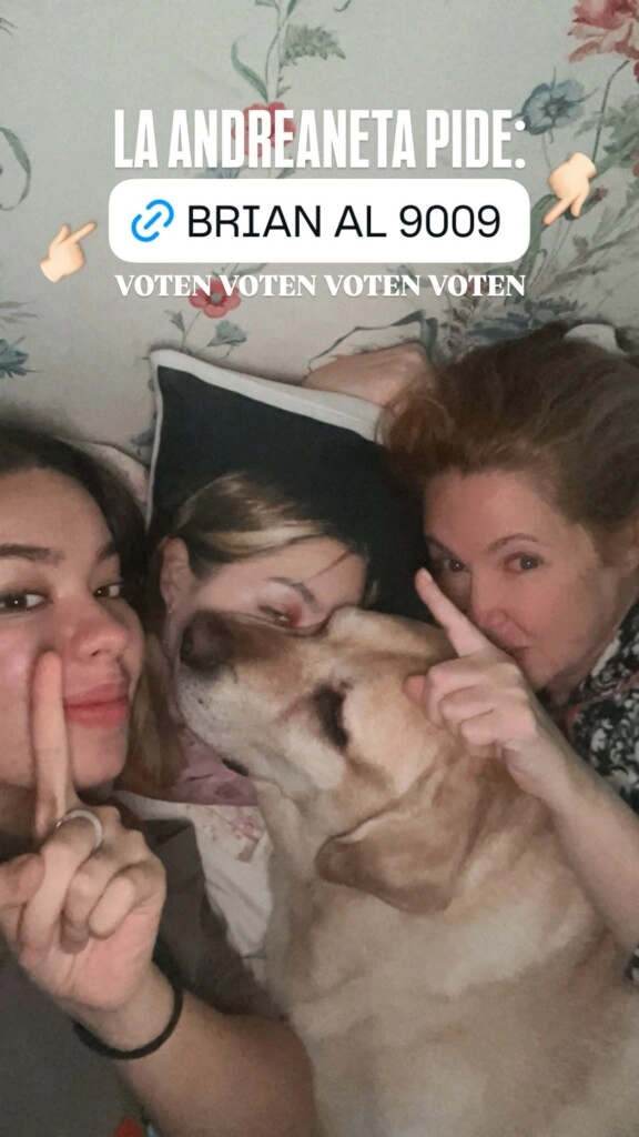 “Mimos que todo lo curan. Estoy bien, reponiéndome, pronto haremos vivo. Gracias por tanto amor y apoyo”, escribió en una de las publicaciones, en tanto que luego pidió a su fandom votar para sacar a Brian Sarmiento de la competencia: “La Andreaneta pide Brian al 9009. Voten, voten, voten”.