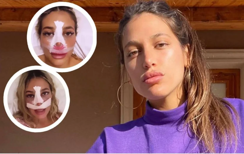 En las imágenes que la ex Gran Hermano compartió se la podía ver con vendas en la nariz y en el brazo, y fue ella quién se refirió a lo que supuestamente había sucedido: “les quería contar que me pisó una moto cuando estaba andando en rollers. Me estrellé contra el frente de la moto, no lo vi y de pedo estoy viva”.