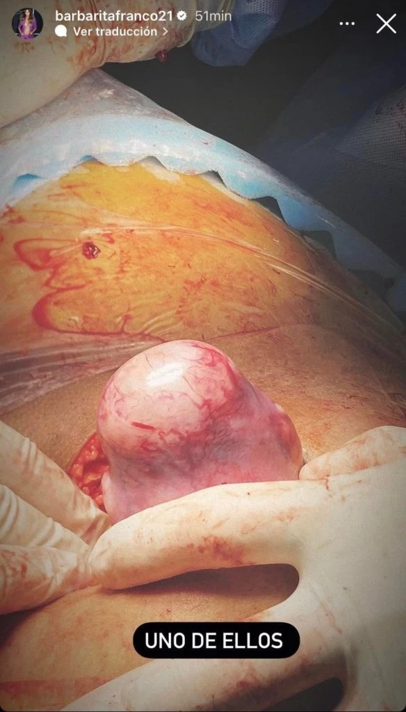 Fue entonces que, en las historias siguientes, Franco subió una impresionable imagen del momento de la cesárea donde bien se llega a ver uno de los quistes que le extirparon y comentó: “Cuando empezó el embarazo tenían un centímetro, aproximadamente, y con el sistema hormonal alterado se van agrandando”.