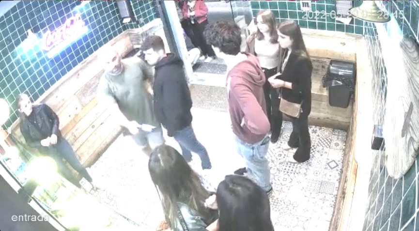 Pero de golpe y porrazo una circunstancia alteraría la aparente calma. Alguien salía "del otro lado del mostrador" y se metía entre la gente. Su actitud no era pasiva, para nada. Primero le aplicaba un rotundo derechazo a una persona de estatura baja y le quitaba algo de las manos. Luego encaraba a otro muchacho: tras pegarle un cabezazo, los echaba a los dos a patadas. No era lo único que hacía. Al volver, les devolvía a unas chicas un celular: el primero de los agredidos les había robado el aparato en un movimiento difícil de advertir. El otro "anestesiado" por el golpe era su cómplice.