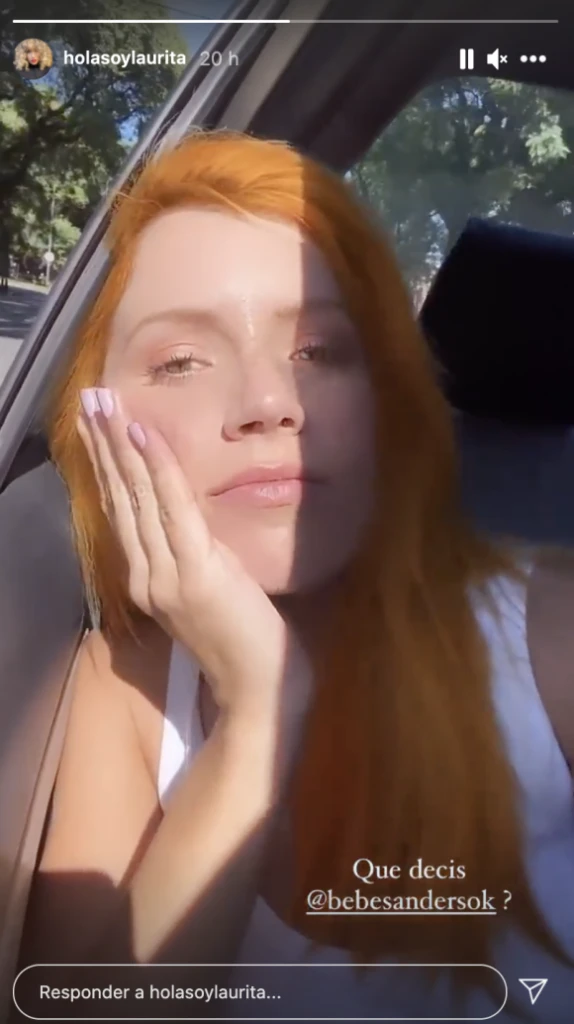 Sentada en el asiento de atrás de un vehículo, con la ventanilla baja y dejando que el viento fresco chocara contra ella, la conductora se puso a jugar en modo selfie, y tras colocarse el pelo bien anaranjado, se filmó y publicó el clip en sus stories de Instagram.
