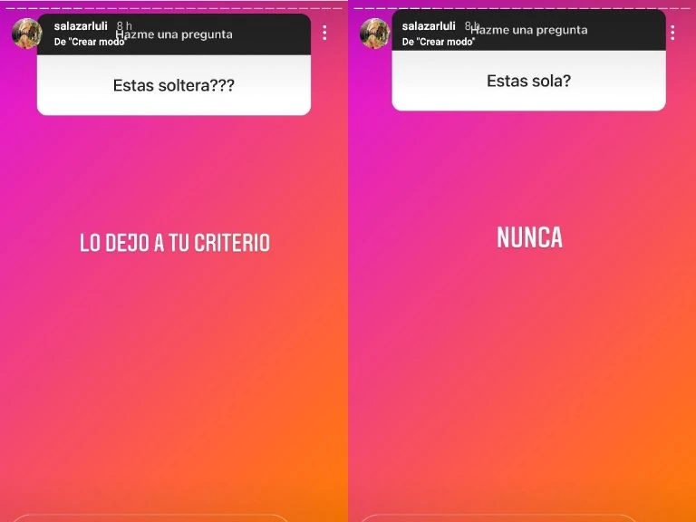 Además, cuando sus seguidores quisieron conocer si “estaba sola”, ella aclaró que “nunca”, dejando entrever que a pesar de no tener una relación formal, suele pasarla bien en compañía de otras personas.