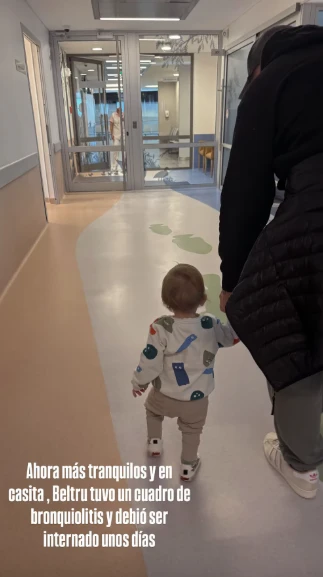 La primera postal que compartieron Alejandro y Coni retrataban los días que estuvieron pasando en esta última semana. “Ahora más tranquilos y en casa, Beltru tuvo un cuadro de bronquiolitis y debió ser internado unos días”, escribieron con una foto del niño de la mano del conductor, caminando hacia la salida del sanatorio; una imagen final alentadora luego de días de angustia.