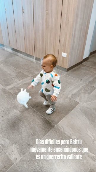 Pero ningún remedio iguala a los brazos de mamá y papá: “Los mimos de mamá y papá lo ayudaron a ponerse bien y salir adelante”, aseguraron en su posteo, mientras se lo podía ver a él sosteniendo a su hijo. Luego una postal más alentadora, donde se lo puede ver al pequeño de zapatillas y con un globo en mano. “Días difíciles pero Beltru nuevamente enseñándonos que es un guerrerito valiente”, escribieron, orgullosos de ese coraje que mostró su chiquito para esta dura batalla.