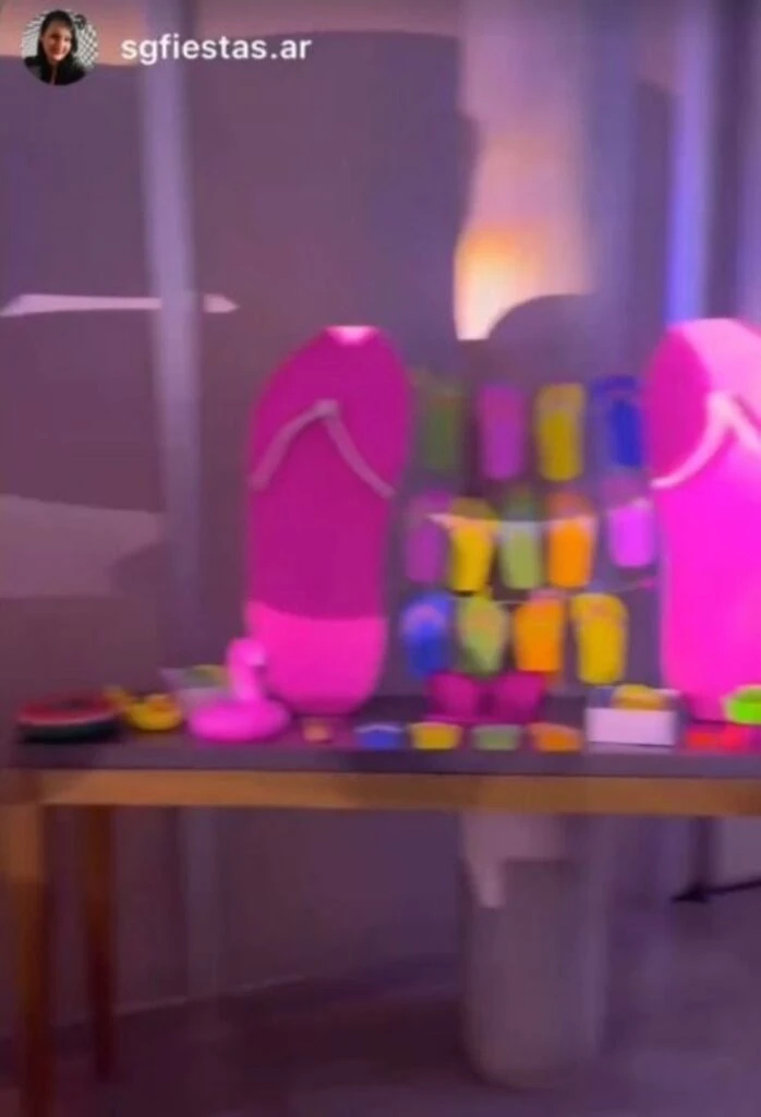 La temática del festejo era playero, en donde los presentes debían lucir como si se encontraron en una playa. Además, la decoración seguía el mismo estilo, ya que habían ojotas o sandalias gigantes, como así también flotadores (con forma de pato o flamencos), tablas de surf y muchas otras cosas más. A su vez, ella misma ofició de DJ.