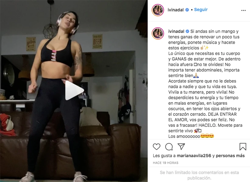 "Acordate siempre que no le debés nada a nadie y que tu vida es tuya. Vivila a tu manera, ¡pero vivila!", aportó en un video donde muestra su manera de hacer gym. Y siguió: "No desperdicies tu energía y tu tiempo en malas energías, en lugares oscuros, en tener los ojos abiertos y el corazón cerrado. Deja entrar el amor, vos podes ser feliz. ¡No vas a fracasar! Hacélo, movete para sentirte vivo".