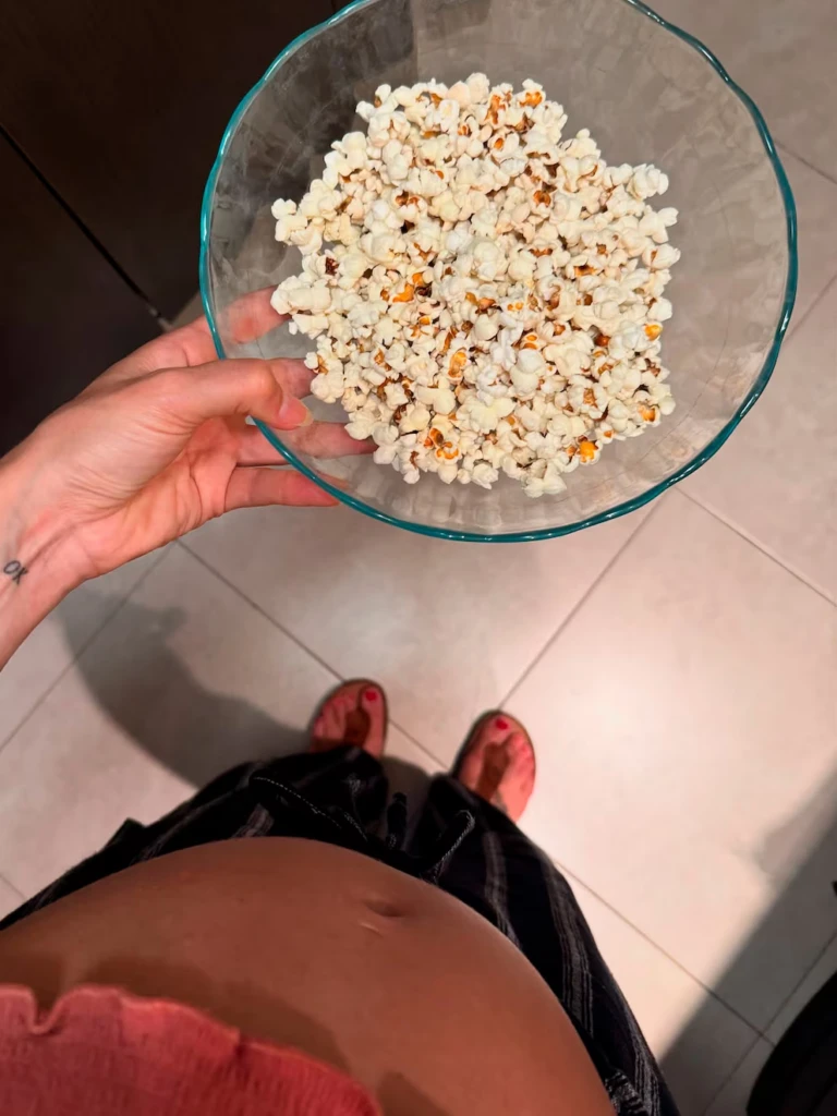 Durante el embarazo, Jimena compartió detalles con sus fans. En una imagen, mostró su panza mientras comía pochoclos, uno de sus antojos. También subió una foto de Matías y Momo caminando juntos bajo un cielo despejado, reflejando la paz que vive en este tiempo.