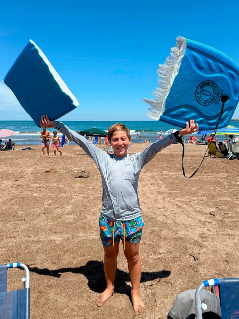 Jimena también mostró cómo Momo disfruta del verano. En una foto, se lo vio saliendo del mar con su tabla de telgopor rota por una ola. En otra, el chico descansaba en el regazo de su mamá mientras miraban el paisaje. Para la cantante, estos momentos en familia son lo más importante.