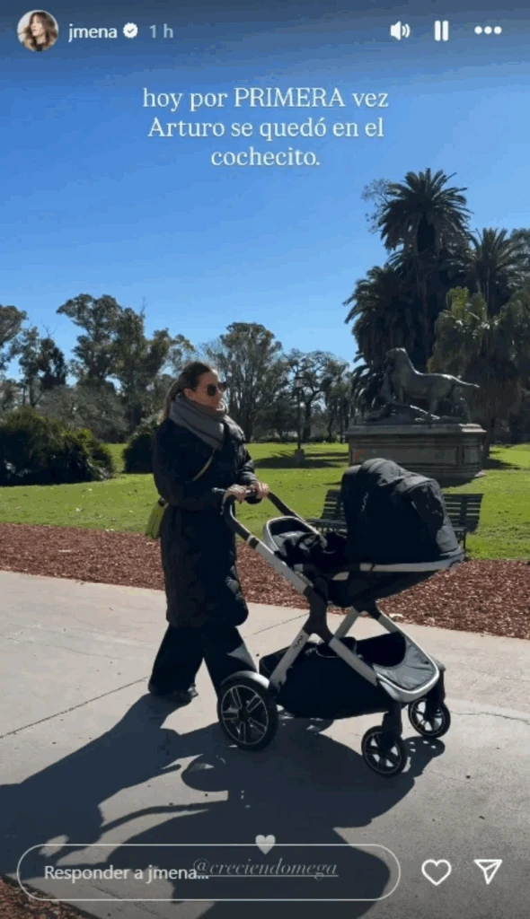 "Hoy por primera vez Arturo se quedó en el cochecito. Lo logramos", escribió orgullosa del gran paso que dio el bebé a poco de su nacimiento. De ese modo, la actriz y su pareja se mostraron emocionados porque fue algo que intentan hace tiempo.