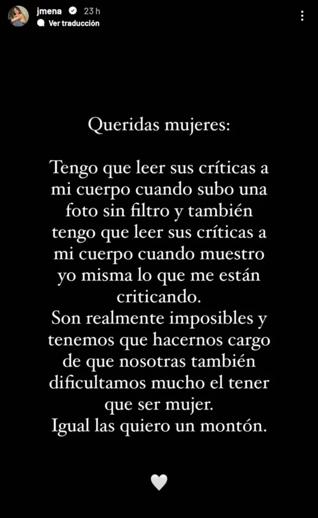 JIMENA FRENÓ A SUS SEGUIDORAS ANTE LAS CRÍTICAS RECIBIDAS A SU CUERPO