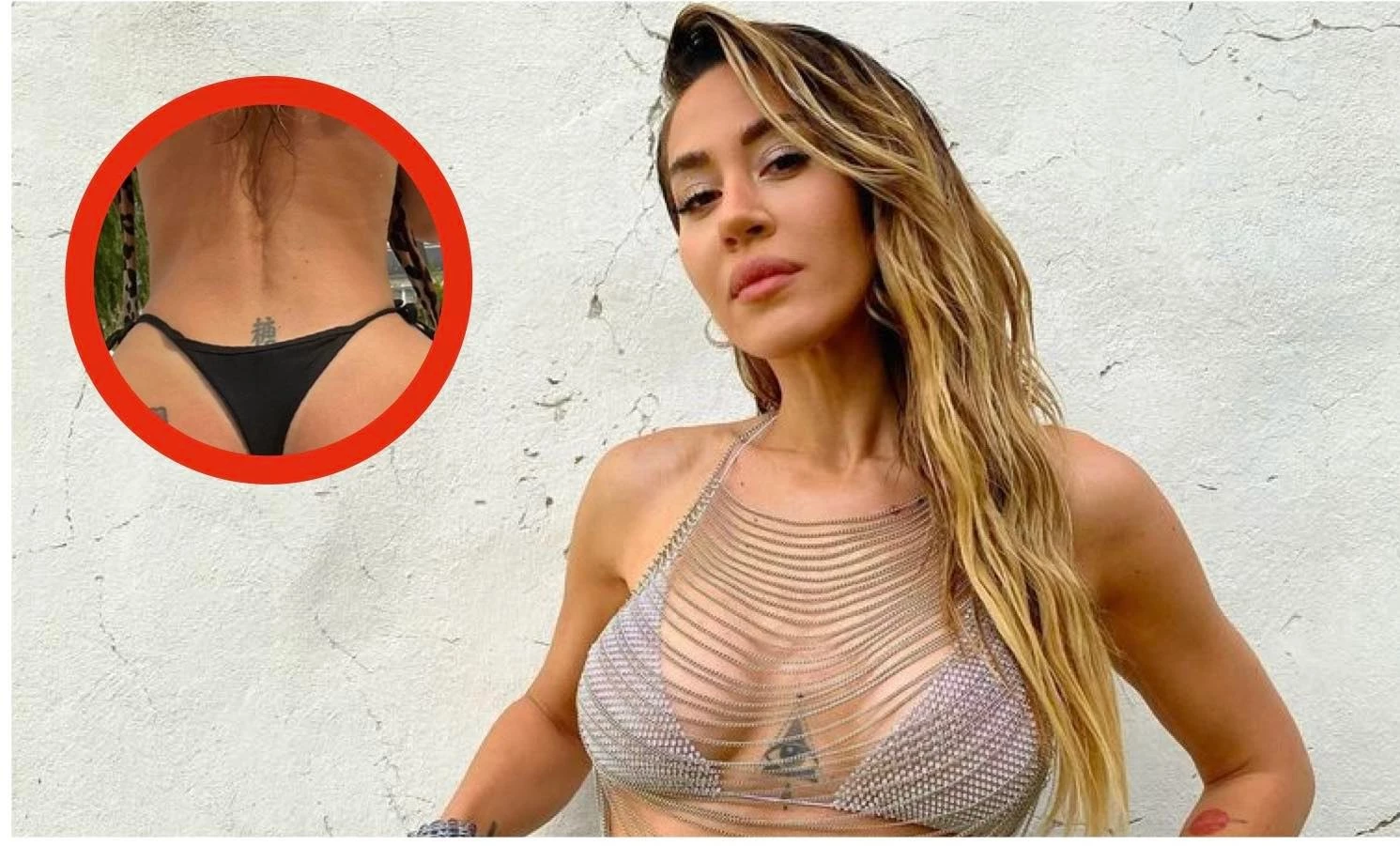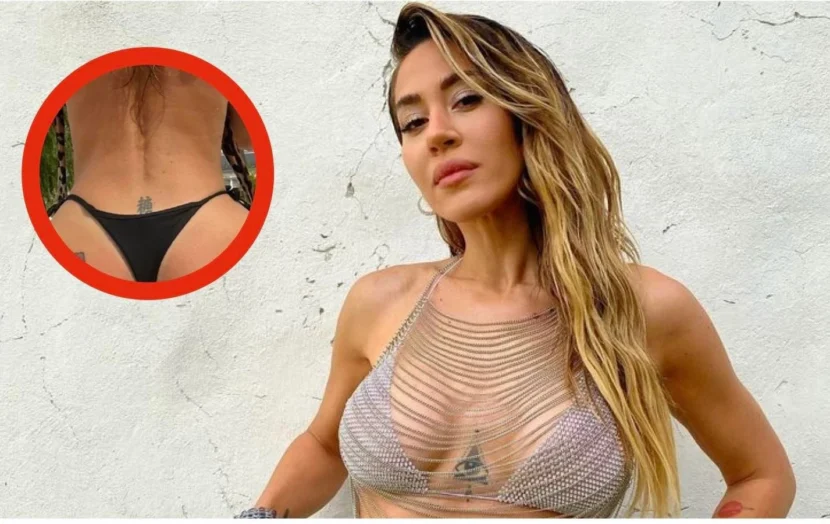 La intérprete de La Tonta suele mostrar su escultural figura en minúsculos trajes de baño… y fue por ello que no pasó desapercibida una impresión en su piel que consta de letras chinas y que está ubicada junto en la espalda y por arriba de la cola.