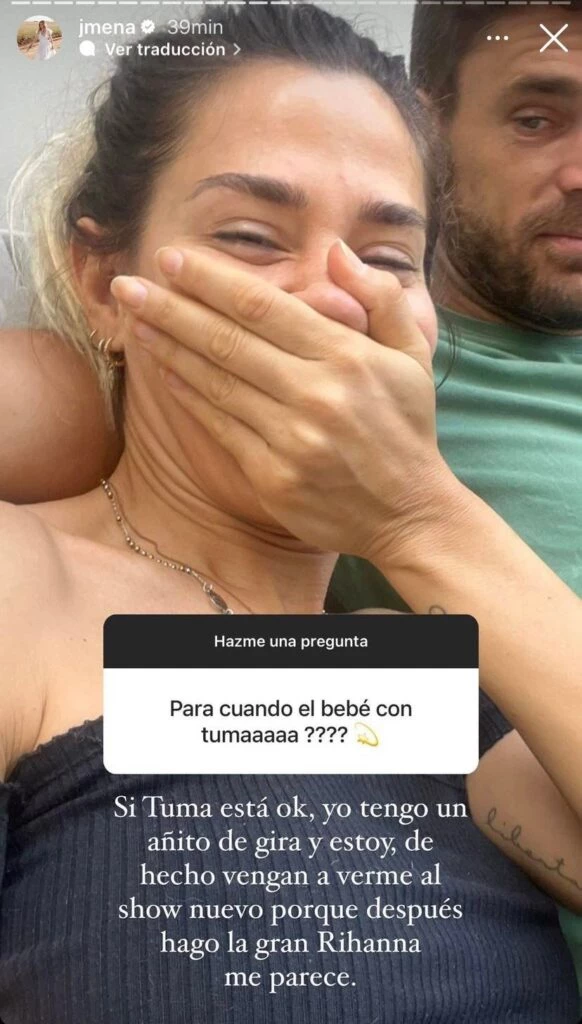 A lo que la intérprete de La Cobra, sobre una foto casera con su novio, escribió: “Si Tuma está ok yo tengo un añito de gira y estoy. De hecho, vengan a verme al show nuevo porque después hago la gran Rihanna me parece”. No obstante, Jimena siguió eligiendo preguntas que tenían que ver con su vida privada y proyectos de pareja.