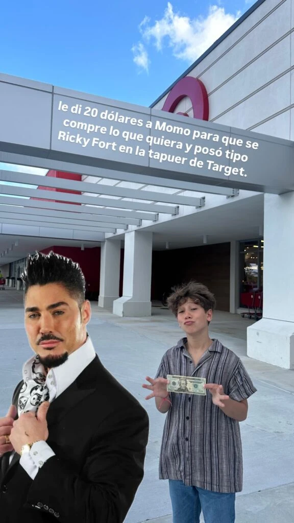 Y con la idea de que Momo empiece a tomar conciencia del valor del dinero y se de algunos gustitos, La Cobra decidió regalarle unos billetes verdes al nene de 10 años. “Le di 20 dólares para que se compre lo que quiera y posó tipo Ricky Fort en la puerta de Target”, escribió Jimena, divertida, en sus historias de IG.