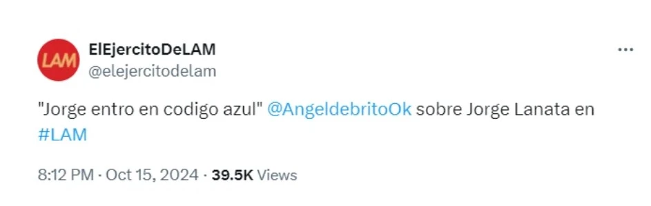 Fue en LAM y en las redes sociales del programa que lidera Angel de Brito donde contaron que “Jorge entró en código azul”, lo que significaría una sensible desmejoría en el cuadro generalizado del periodista que enfrenta distintas dificultades médicas, entre ellas una isquemia intestinal.