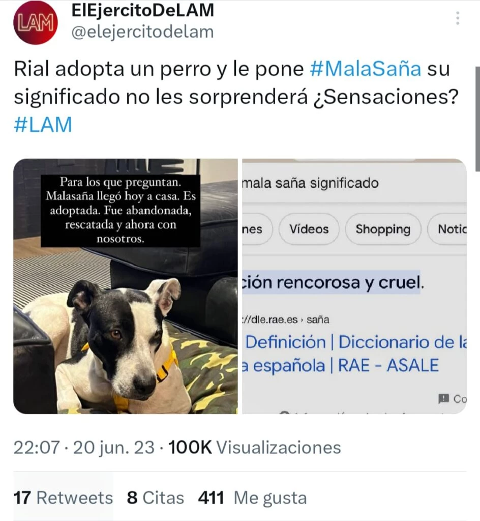 Los twitteros que se pusieron más creativos, crearon imágenes con la cara de la perrita sentada en el living de A la tarde (programa en que Morena habló pestes del padre) o que el conductor no aprendía más respecto a la adopción. Otros lo tomaron como un palo para su hija mayor: "Encima aclara que fue abandonada, rescatada y adoptada por él... mmm un par de indirectas por ahí".
