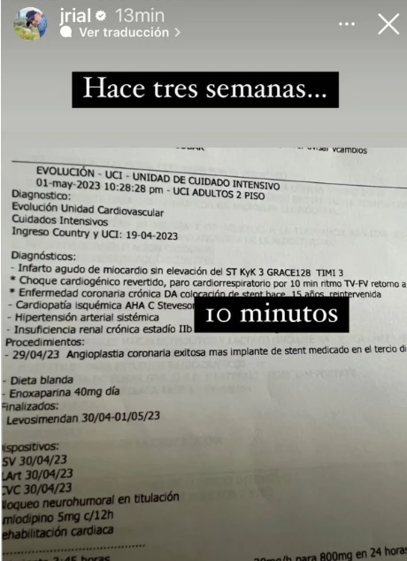 “Paro cardiorrespiratorio por 10 minutos”, decía en la planilla que compartió. Si había alguien que estaba con dudas o que no terminaba de convencerse en su relato, con la irrefutable prueba que subió, Jorge considera que con esto nadie podrá contradecirlo.