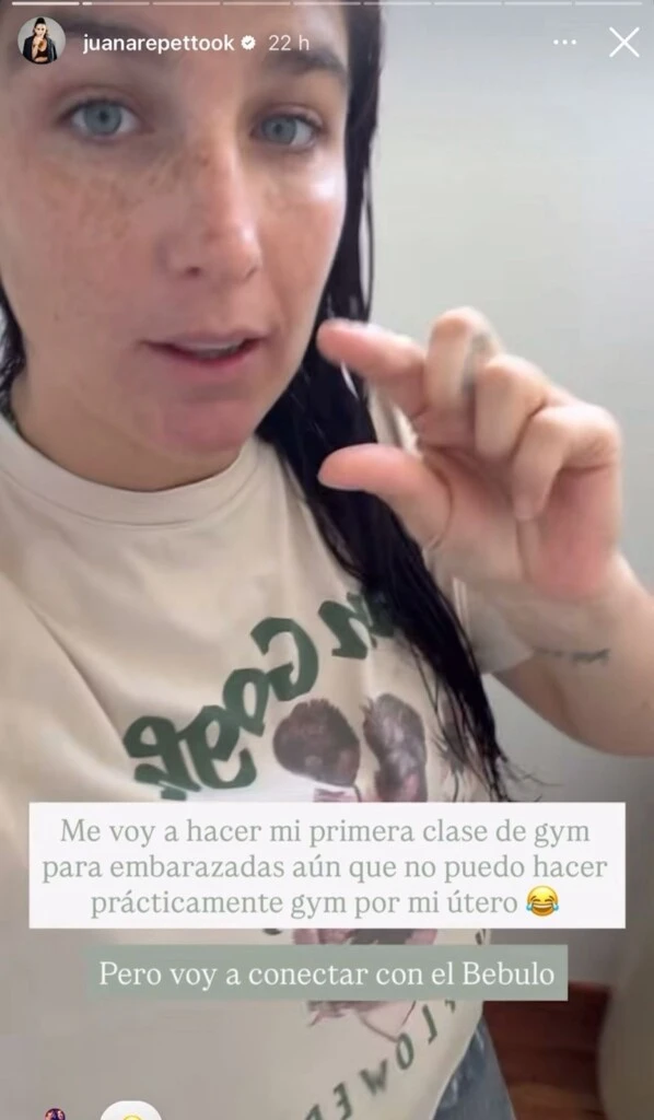 Así, en tanto se colocaba protector solar en el rostro y le hablaba a la lente del celular, Juana Repetto compartió un problema personal que atraviesa durante la gestación y por lo cual está limitada con ciertos ejercicios a la hora de pretender entrenar.