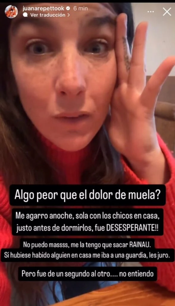 El lunes, desde muy temprano, incluso antes de que sus hijos Toribio y Belisario volvieran al colegio post vacaciones de invierno, la actriz e influencerJuana Repetto irrumpió entre sus historias de instagram a fin de compartir la terrorífica noche que había pasado.