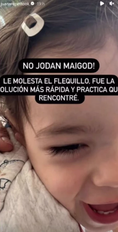 “PAUSA, llegó bebu. En breve les muestro como le armé el lunch y el almuerzo de Beli’’, escribió Juana en una de sus stories. Aunque hasta ahí parecía ser una tierna situación, la actriz subió otra foto y con un furioso descargo hacia algunos fanáticos.