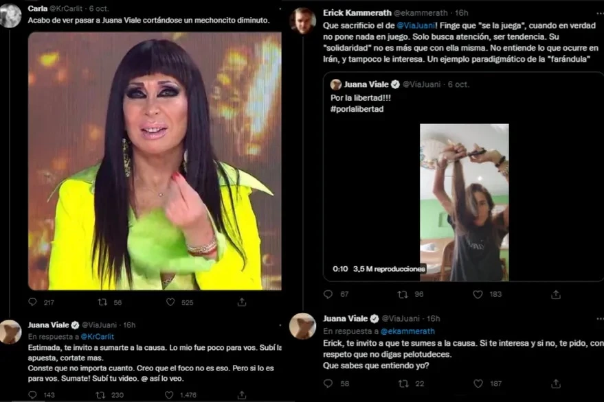 Juana Viale hace algunas horas compartió un video donde muestra cómo se corta el pelo en apoyo a las mujeres iraníes. Sin embargo, lejos de recibir buenos mensajes, la hija de Marcela Tinayre fue duramente criticada en las redes sociales.