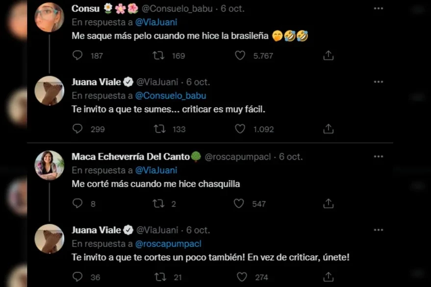 Y es que, muchos usuarios de Twitter la tildaron de querer "seguir las tendencias" y no apoyar realmente a quienes lo necesitan: "Acabo de ver pasar a Juana Viale cortándose un mechoncito diminuto". Sin embargo, Juana Viale salió al cruce en la red social del pajarito.