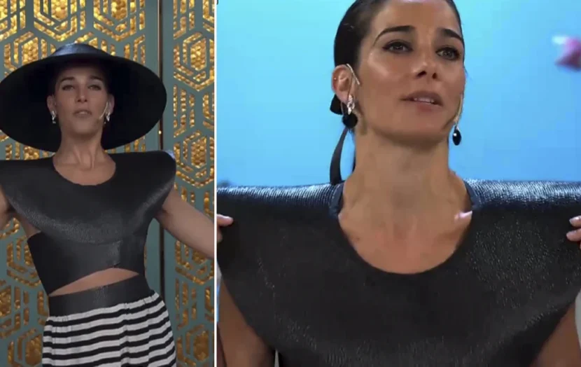 Así, la hija de Marcela Tinayre sorprendió en el comienzo del programa con su atuendo con aire japonés, con un sombrero con reminiscencias en el kasa, ese de formato cónico tan emblemático de la cultura oriental y un top muy peculiar.