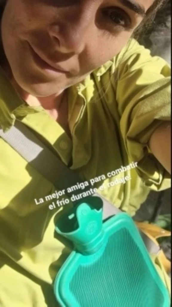 La mejor amiga para combatir el frío durante el rodaje”, escribió Juana Viale en una historia de Instagram en la que compartió con una foto el llamativo método, en donde se la puede ver con la bolsa de agua caliente en el regazo.