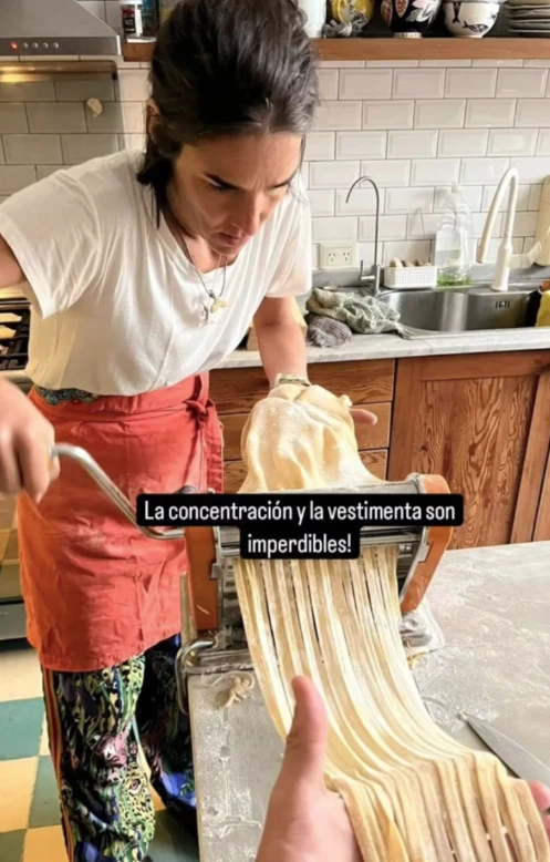 “Creando la magia con amor, errores, más amor y amor. La concentración y la vestimenta son imperdibles”, lanzó Juana en una de sus historias, mientras estiraba la masa que luego dejaría reposar por varios minutos, además de pasarla por la máquina pasado el tiempo de reposo.
