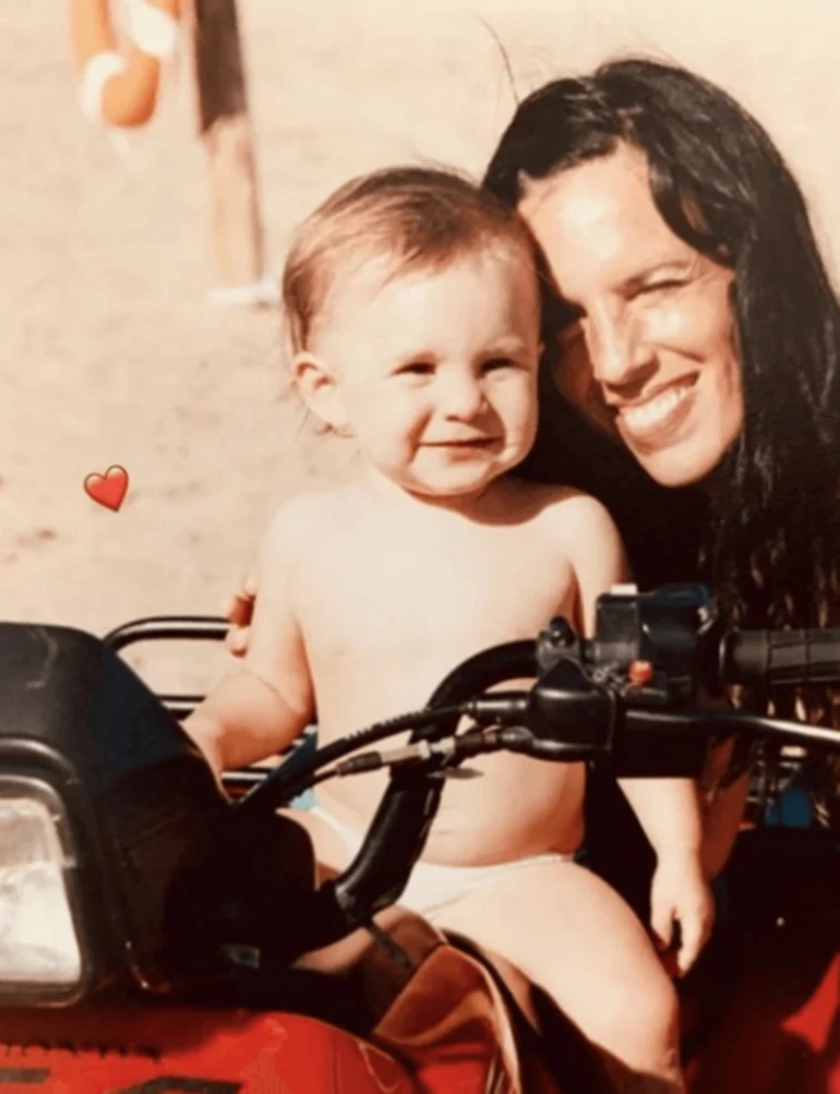 Unos minutos más tarde, la influencer de 17 años compartió con el mundo una instantánea bellísima, en la que se la ve en una playa, arriba de un triciclo y con Robles sonriendo. Una postal que resume a la perfección el amor maternal.