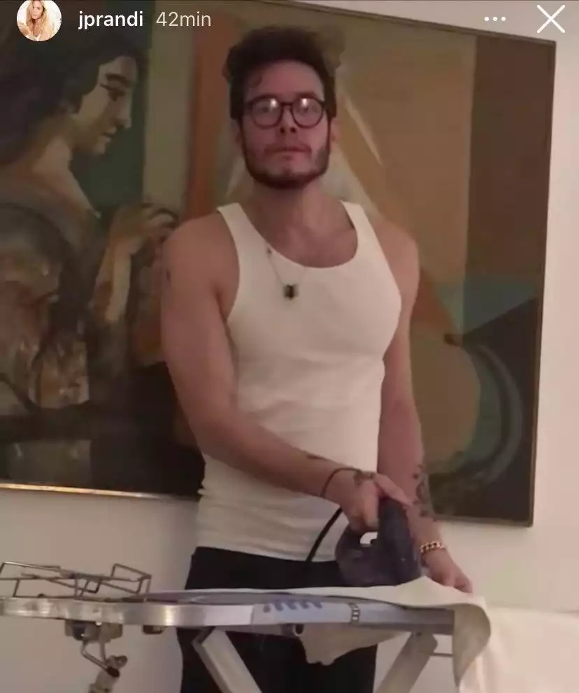 El fin de semana largo y en medio de la convivencia, Prandi tomó por sorpresa a su pareja y lo empezó a grabar mientras realizaba una tarea del hogar. Lejos de guardar las imágenes como un momento privado, la modelo las publicó en sus historias.