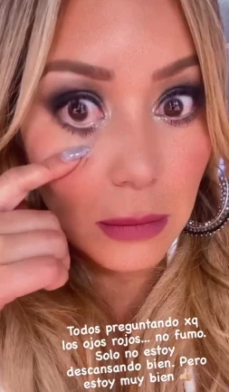 "Todos preguntando por qué los ojos rojos. No fumo, solo no estoy descansando bien. Pero estoy muy bien", aclaró La Princesita a través de sus Stories.
