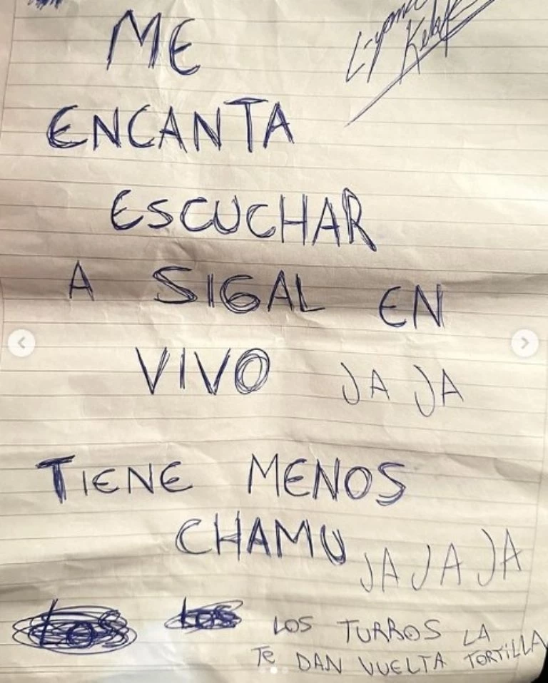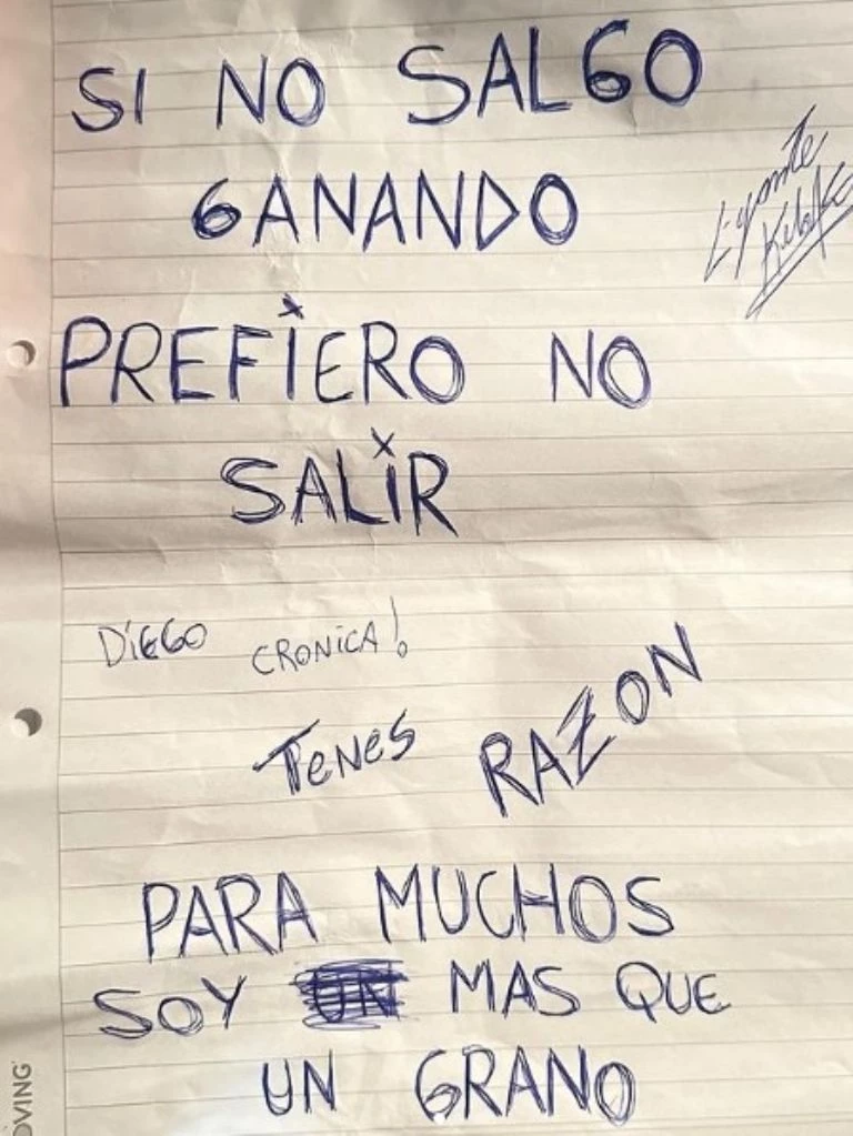 "Diego de Crónica, tenés razón, para muchos soy más que un grano. Me encanta escuchar a Sigal en vivo jaja, tiene menos chamuyo jajaja. Los turros te dan vuelta la tortilla. Gracias por el aguante, yo estoy re piola, descansando. Nos vemos pronto y mejor que nunca. Celda 4", cerró.