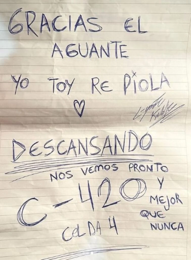 A través de una manera muy ingeniosa, el referente de la cumbia 420 mandó mensajes sobre su estadía tras las rejas. La información llegó por sus mismas redes sociales, en donde sus allegados mostraron los escritos que hizo Elian Valenzuela.