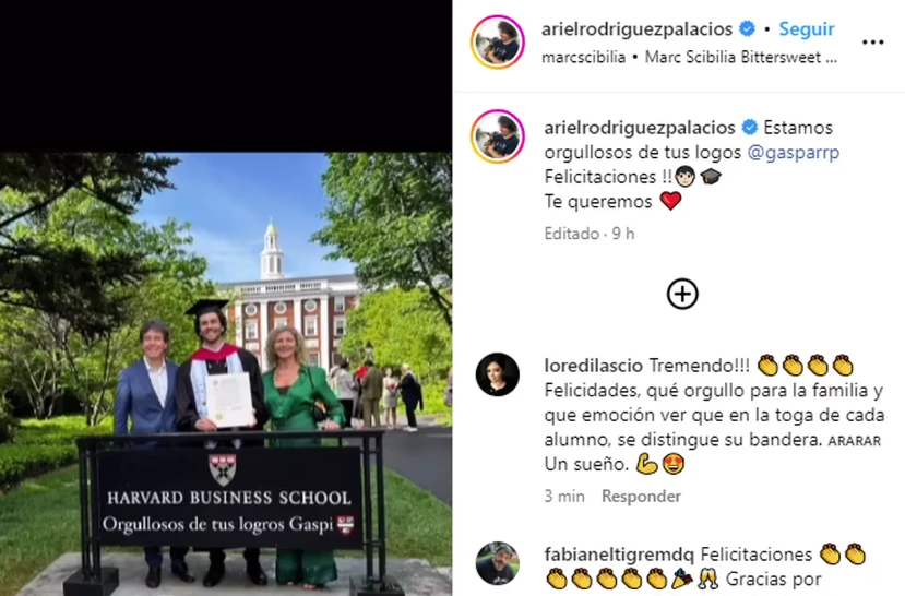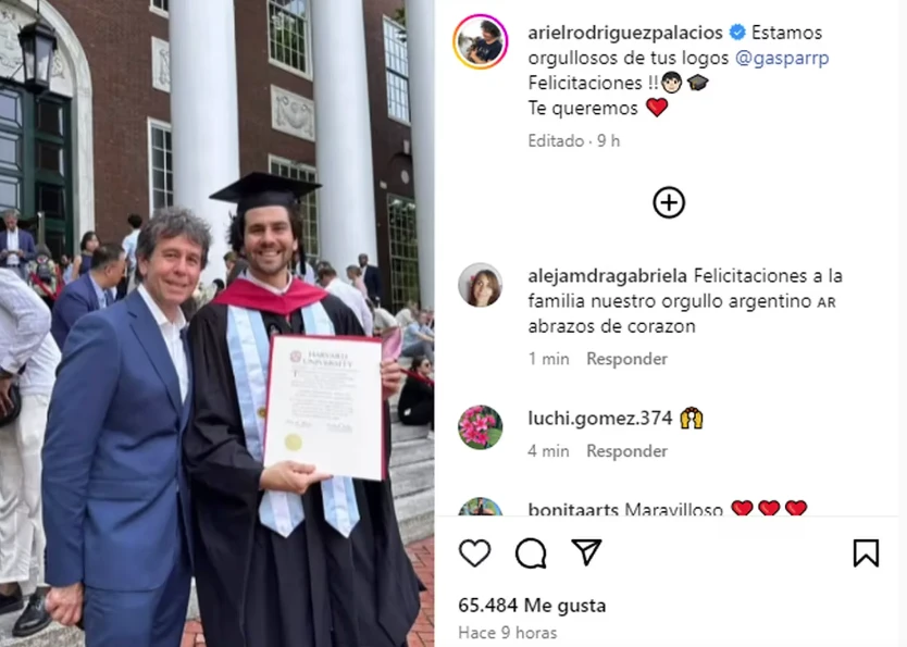 Ariel Rodríguez Palacios fue testigo presencial de uno de los momentos más importantes de su hijo mayor, Gaspar. El joven se recibió en Harvard, una de las universidades más importantes del mundo, y el conductor viajó especialmente para compartirlo con él.