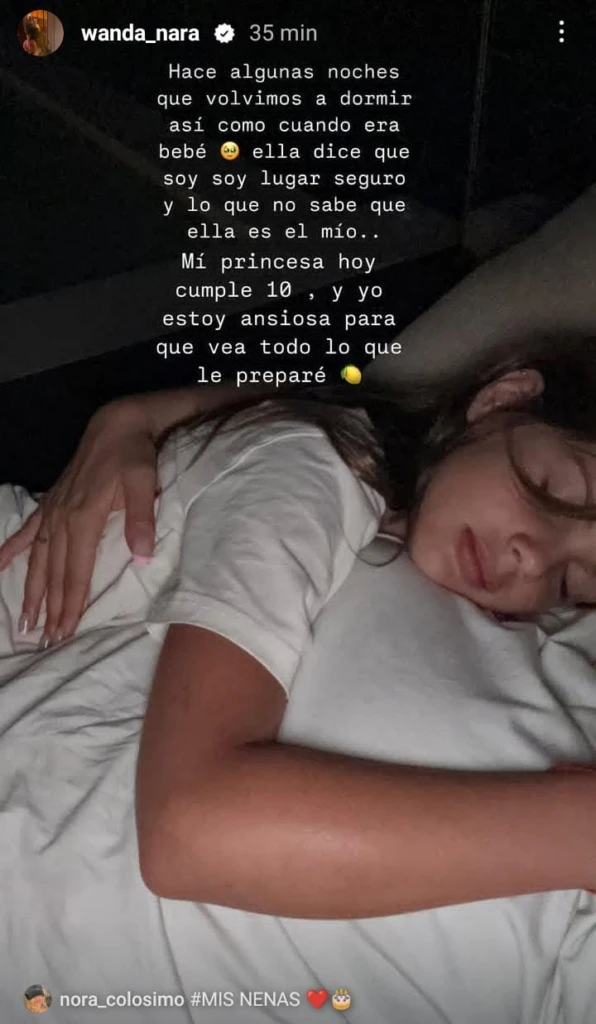 A través de su cuenta de Instagram, Wanda subió una foto de su hija, durmiendo en sus brazos y con un tierno mensaje. Para la empresaria estas fechas son muy especiales y le remueven muchísimos sentimientos.