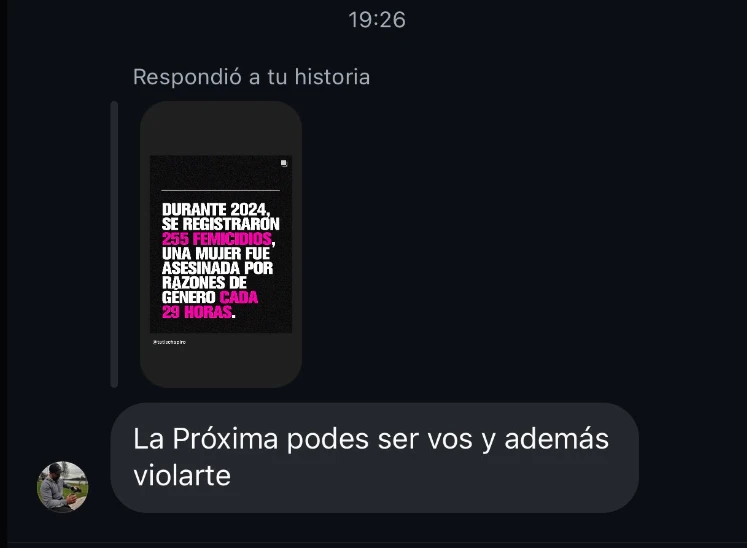 Todo se originó en una exposición de pensamiento de la conductora de Olga, cuando publicó un mensaje sesudo y lleno de coherencia: “Durante 2024 se registraron 255 femicidios, una mujer fue asesinada por razones de género cada 29 horas”. Increíblemente eso motivó a un señor a mandarle un mensaje cargado de terror.