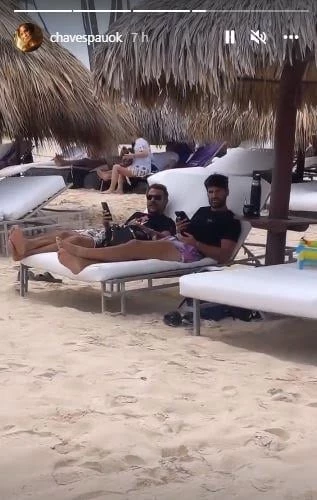 Fue Paula quien sorprendió con un posteo dedicado para su esposo y el reconocido dj. Les sacó una foto en su mejor momento y lo compartió en sus historias. En la misma, se ve a su marido y a Meme de lejos, recostados cada uno en una reposera, con el mismo gesto y el celular en la mano.