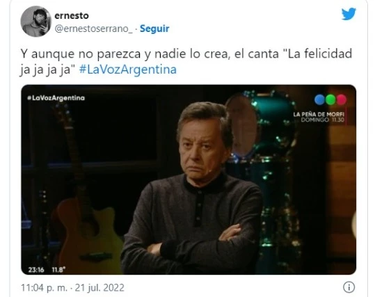 Fue por eso que en las redes se desató una lluvia de memes: "Palito ortega me hace acordar a mi todas las mañanas en el trabajo”, "Palito Ortega dijo ‘Bueno, voy a ir a la voz pero de muy mala gana'", "Palito Ortega en La Voz representa un día mío de mal humor", "Palito Ortega es yo cuando me dan opiniones que no pedí", entre otros.